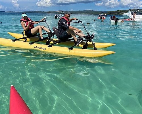 We woke up early for what became the highlight of the whole trip the Chili Boat Tour through the mangroves of La Parguera. We booked the 8:00 AM slot at $65 per person, arriving 45 minutes early for the safety briefing. These little pedal-powered boats glide through the mangroves effortlessly. No tired arms, no intense paddling just leaning back, pedaling gently, and taking in the most beautiful calm blue water, tiny fish beneath you, and lush green mangroves all around.